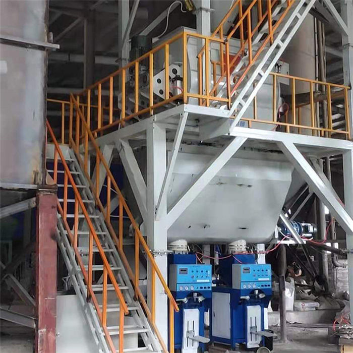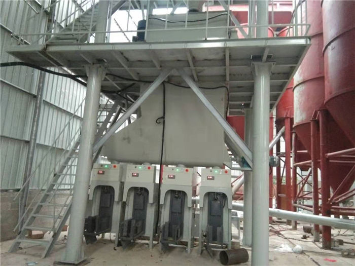 五、該套設備在常規自動包裝機的基礎上,還配備有高效散裝裝車機,該系統可對4米及以下槽罐車進行自動散裝作業,滿足工地大批量散裝砂漿的使用需求。