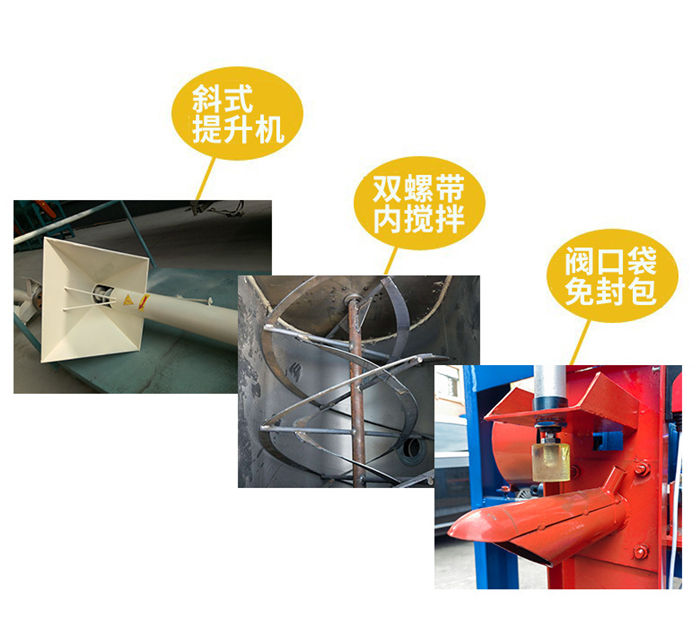 該設備為全自動干粉砂漿攪拌機,整機四角加上料計量,適合多種物料混合的攪拌,設定好斤稱之后,物料由提升機上料,斤稱達到自動停止,然后接著上第二種物料,以此類推,計量準確,省時省力;出料系統設計也是電腦計量裝置,無需人工二次稱重,閥口袋包裝,無需再次封口,出料速度快,4秒一袋,1人即可操作,省時省力;攪拌機機身為臥式U型筒體,內部由內外兩層螺帶交錯布置,攪拌均勻,混合速度快,5至8分鐘即可攪拌均勻,出料可根據不同物料的實際需求定做多個出料口。