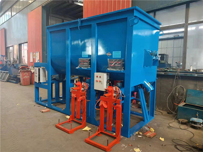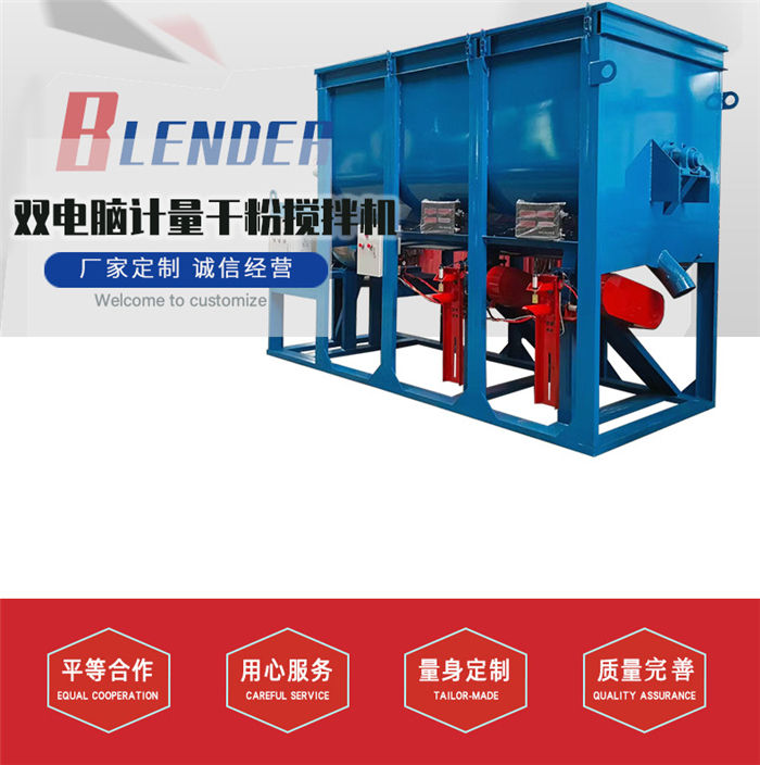 該設(shè)備為全自動(dòng)干粉砂漿攪拌機(jī),整機(jī)四角加上料計(jì)量,適合多種物料混合的攪拌,設(shè)定好斤稱之后,物料由提升機(jī)上料,斤稱達(dá)到自動(dòng)停止,然后接著上第二種物料,以此類推,計(jì)量準(zhǔn)確,省時(shí)省力;出料系統(tǒng)設(shè)計(jì)也是電腦計(jì)量裝置,無需人工二次稱重,閥口袋包裝,無需再次封口,出料速度快,4秒一袋,1人即可操作,省時(shí)省力;攪拌機(jī)機(jī)身為臥式U型筒體,內(nèi)部由內(nèi)外兩層螺帶交錯(cuò)布置,攪拌均勻,混合速度快,5至8分鐘即可攪拌均勻,出料可根據(jù)不同物料的實(shí)際需求定做多個(gè)出料口。